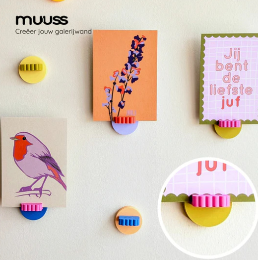 De MUUSS kaarthouderschakel is één van de losse elementen binnen het modulaire MUUSS-systeem. In combinatie met de basishouder creëer je eenvoudig een unieke wandpresentatie voor kaarten, prints, foto's of kleine kunstwerkjes. Zonder te boren.