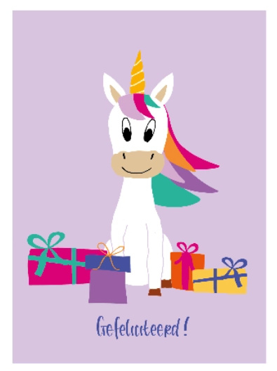 Kaart met unicorn 'Gefeliciteerd'A6 postkaart gedrukt op 300 grams papier, 100% gerecycled.